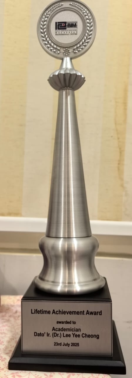 I would like to thank Balai lkhtisas Malaysia most sincerely for bestowing on me the prestigious BIM Lifetime Achievement Award.